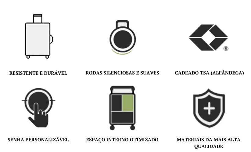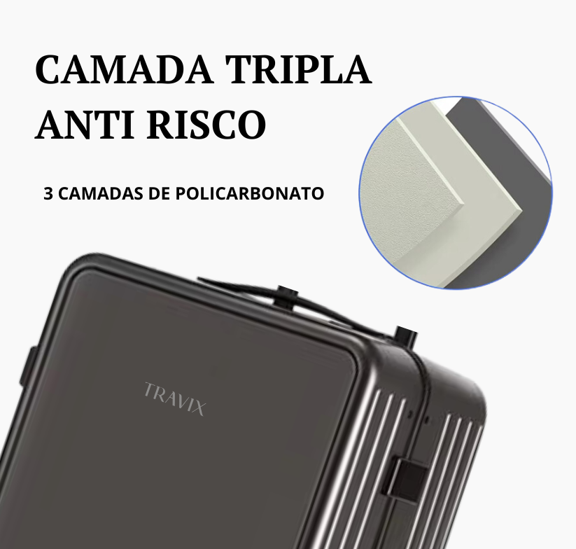 Material: Policarbonato - considerado um dos mais rígidos e resistentes para malas de viagem.